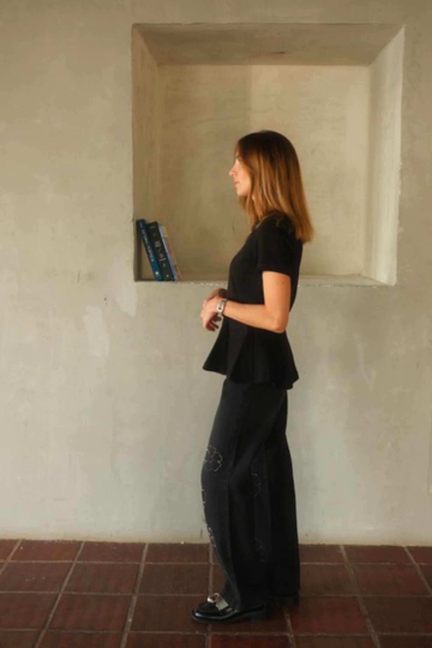Jeans en 100% algodón en tono negro vintage con efecto washed, con apliques de flores brillantes en las piernas que elevan la pieza y la convierten en un statement. De tiro medio, con un fit semiajustado en cintura y cadera y piernas de corte recto, resaltan la silueta sin perder comodidad.