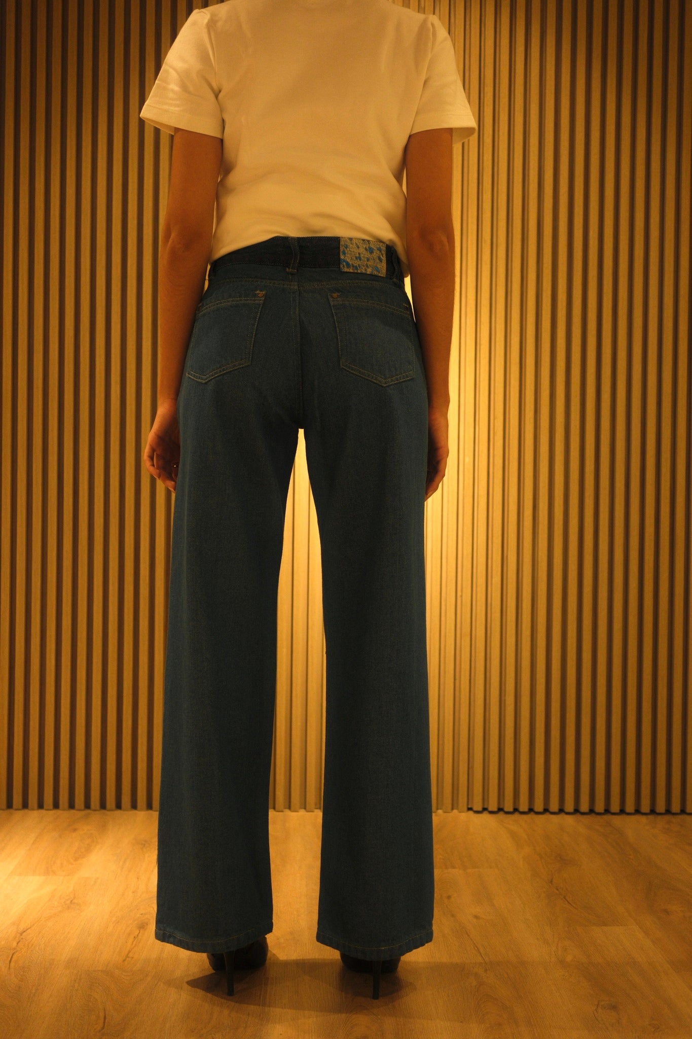 Su denim rígido moldea suavemente la cintura sin apretar las piernas, logrando un balance ideal entre estructura y comodidad. Un diseño versátil para llevar todos los días, un fit relajado con un acabado visual único, ideal para looks frescos y modernos. Garra de animal print metalizada.
