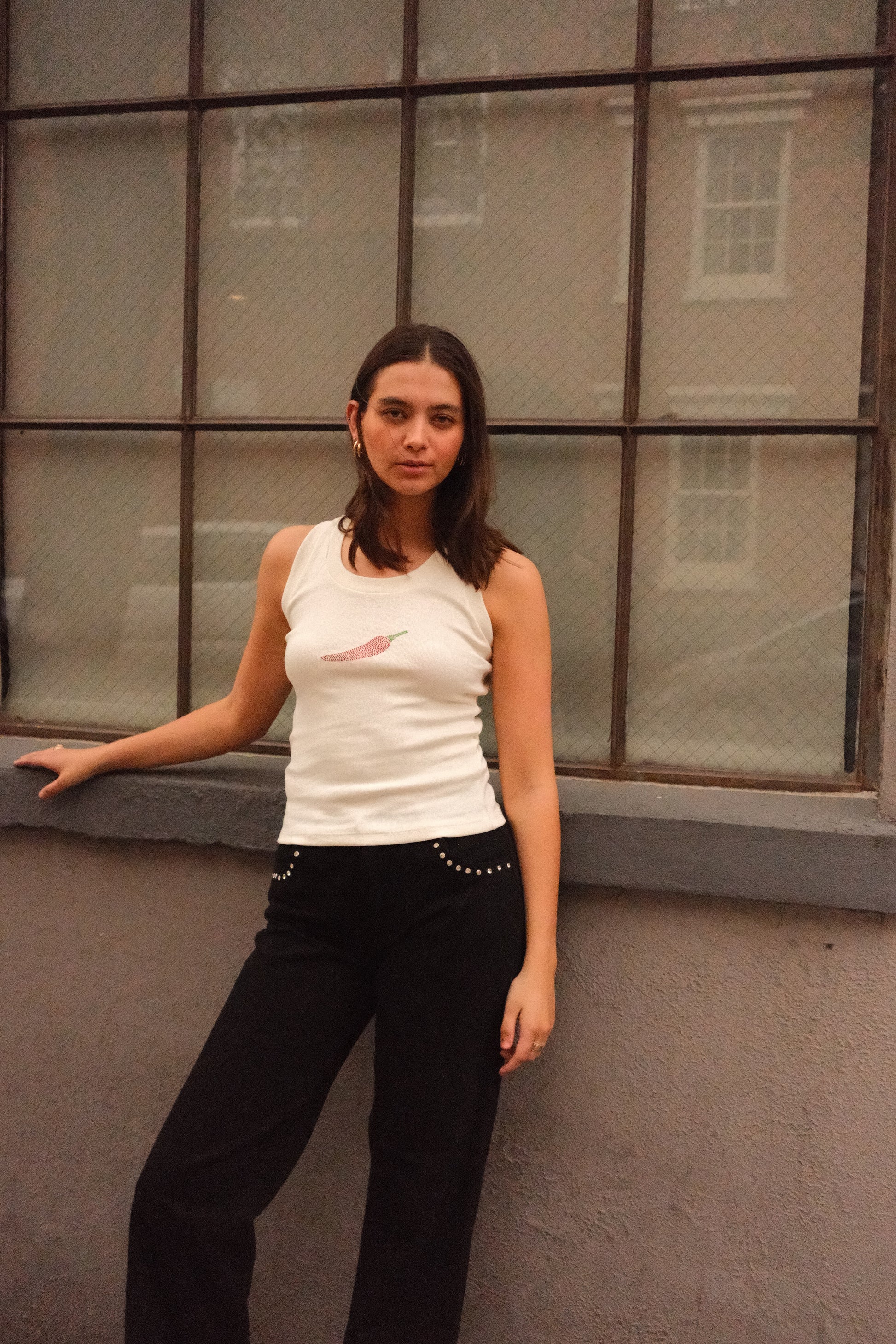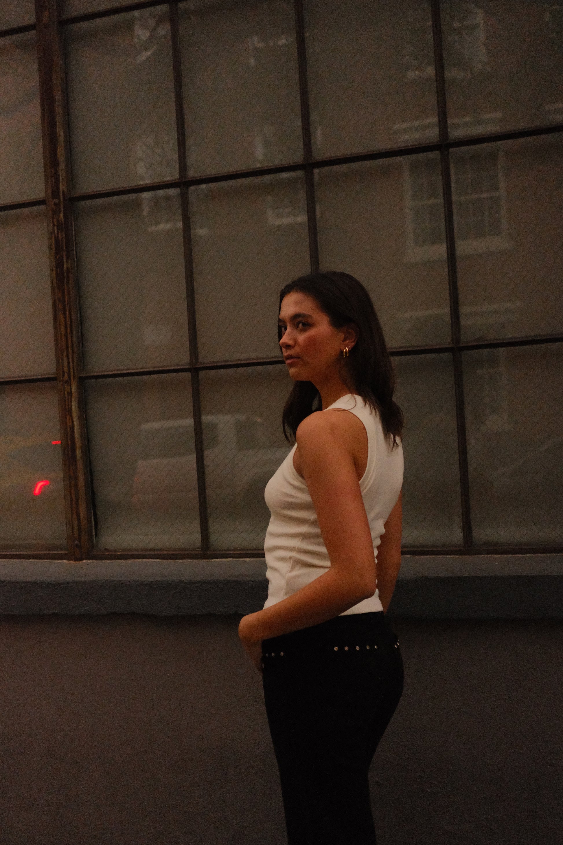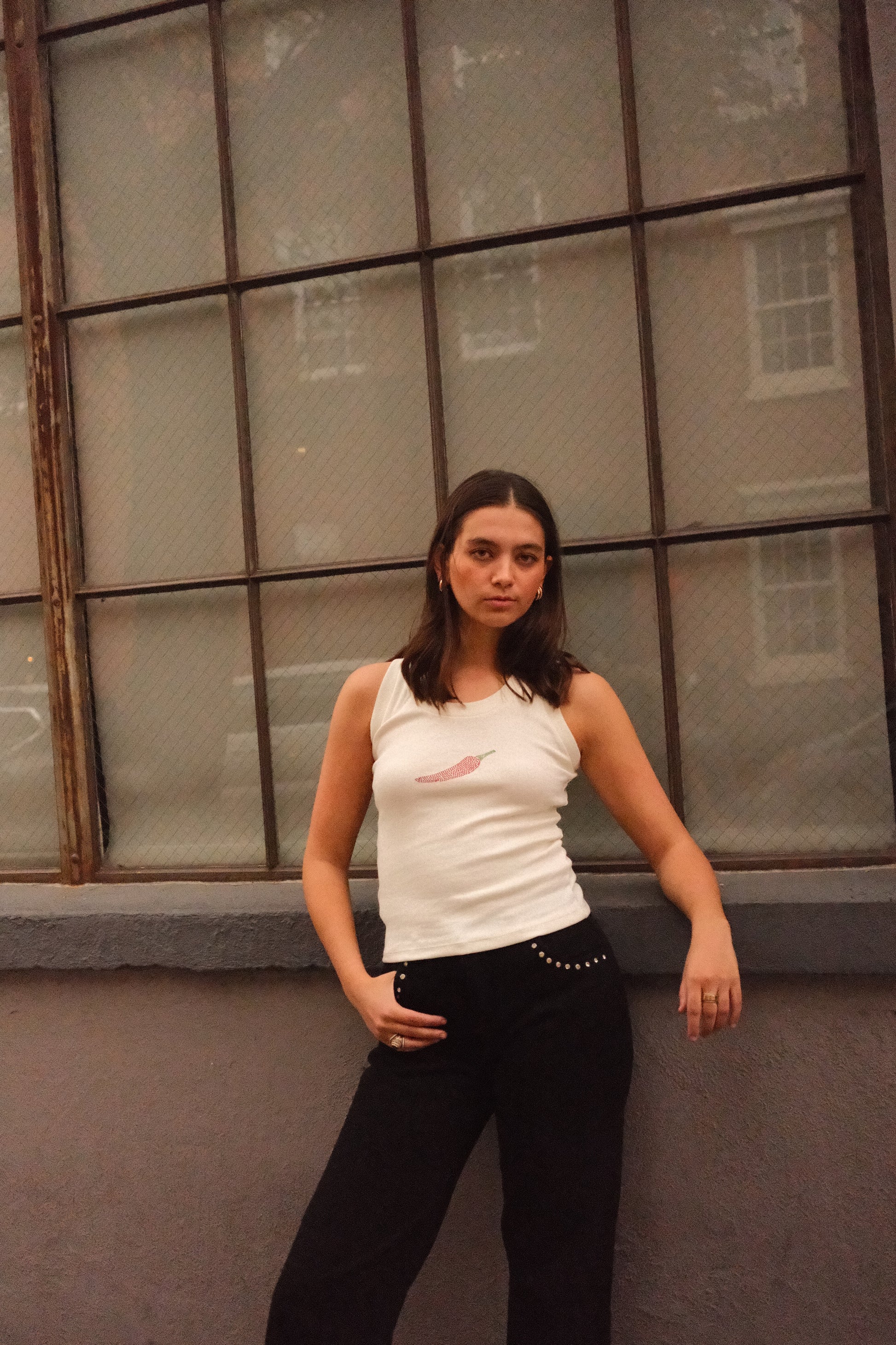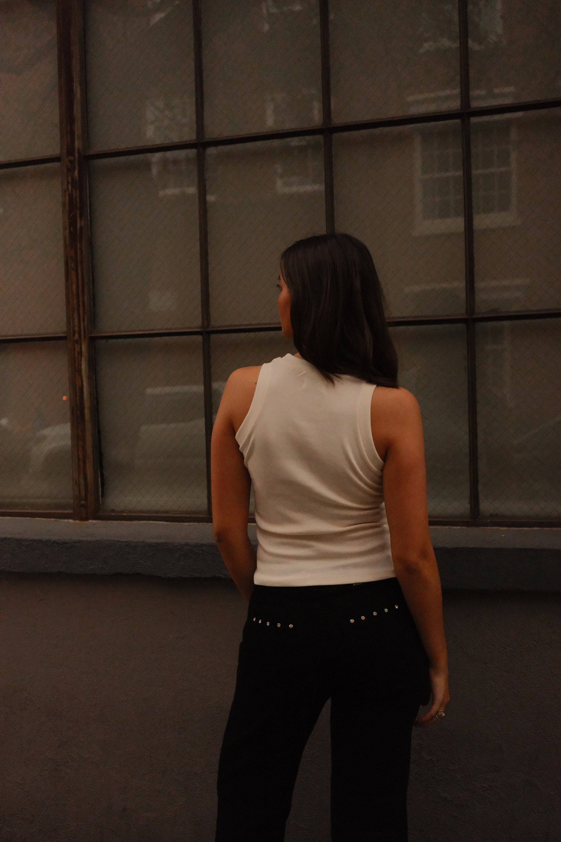 Top blanco en tela de algodón, muy cómodo, versátil e ideal para style tus looks.